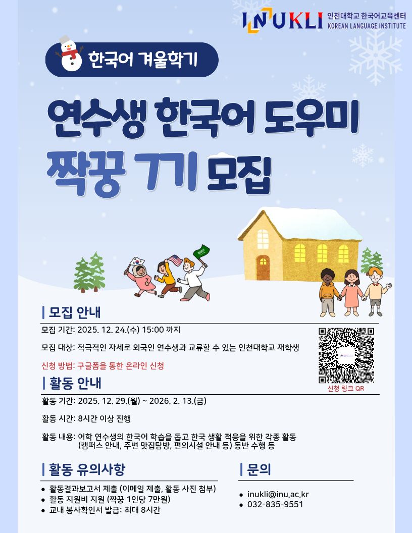2025년 겨울학기 어학연수생 ‘짝꿍’ 모집 (제7기)